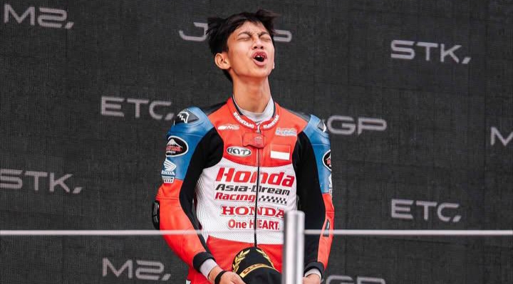 “Kita berharap Ramadhipa kembali bikin kejutan di eropa,” tulis Astra Honda Racing Team di sosmednya yang memuat foto M Kiandra Ramadhipa.