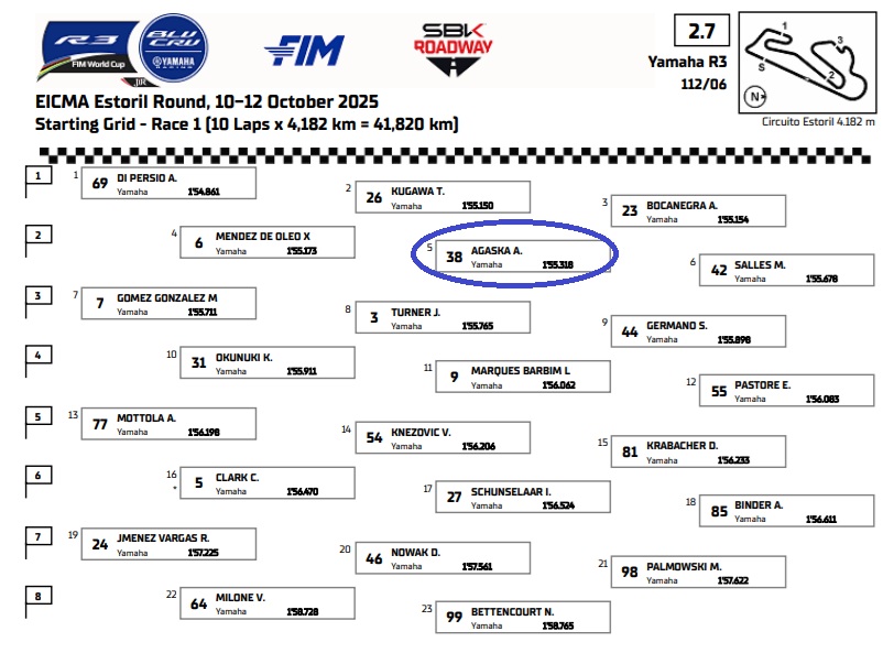 Arai Agaska akan memulai balap dari grid ke 5 atau baris ke 2. Sesuai hasil sesi Superpole yang dilakukannya.