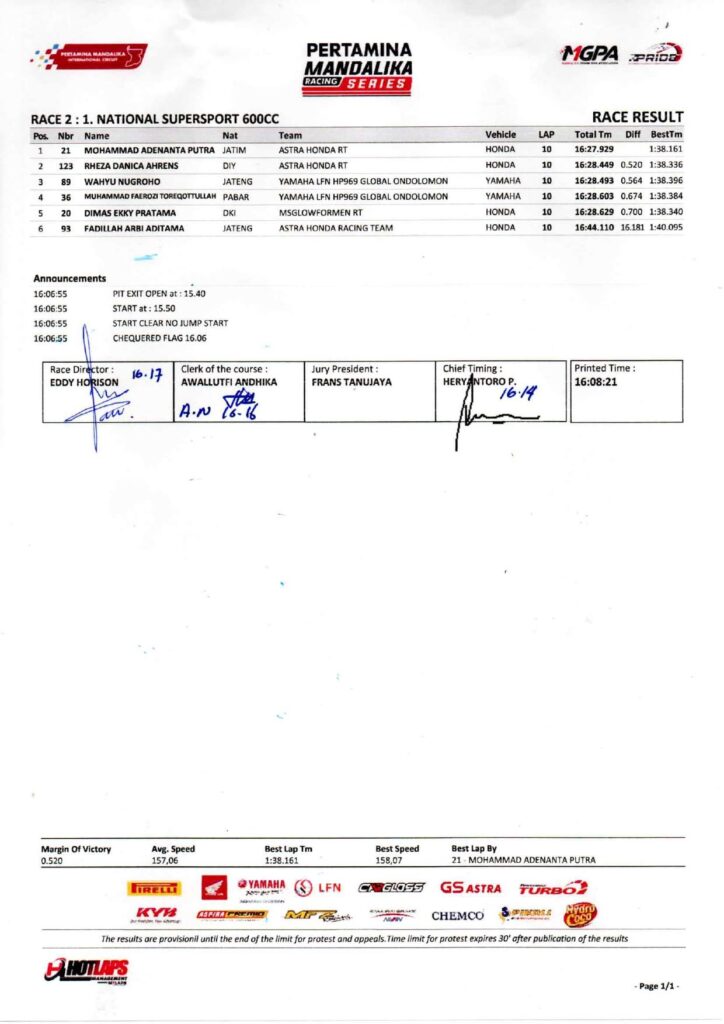Ditambahkannya. “Kami terus berkomitmen menjaga standar penyelenggaraan balap yang aman, kompetitif, dan berkelas dunia. Mandalika adalah rumah bagi masa depan balap Indonesia,” tegasnya