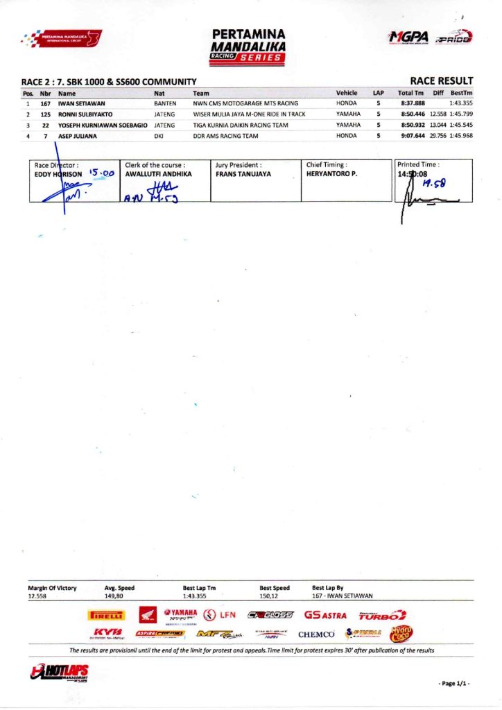 “Pertamina Mandalika Racing Series telah membuktikan diri sebagai wadah penting pembinaan dan pembibitan pembalap nasional. Tahun ini kita melihat peningkatan signifikan dalam profesionalisme tim dan kemampuan teknis para pembalap muda,” ujar Direktur Utama Mandalika Grand Prix Association (MGPA), Priandhi Satria