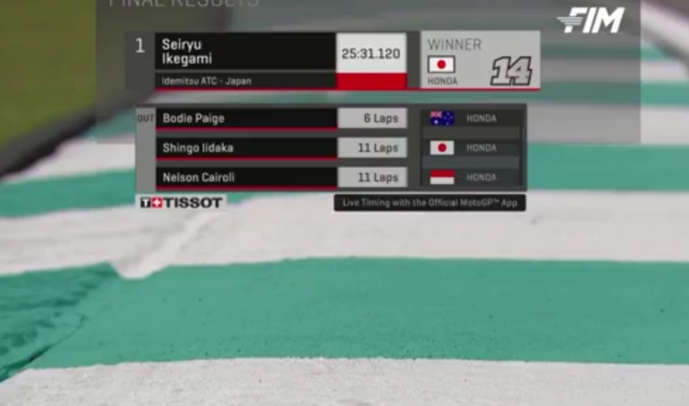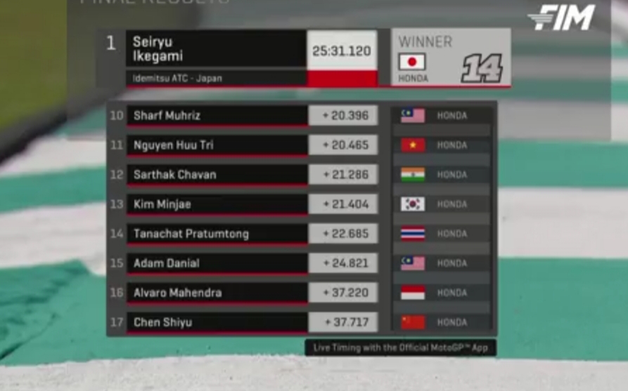 Sedang Alvaro Hetta Mahendra start grid 16 dan finish diposisi yang sama ke 16.