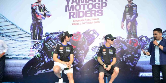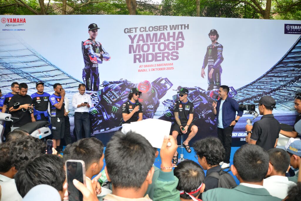 Yamaha menggelar aktivitas berbeda jelang MotoGP Indonesia. Aktivitas untuk semakin mendekatkan duo rider Monster Energy Yamaha MotoGP dengan para penggemarnya. Fabio Quartararo dan Alex Rins menyambangi sekolah untuk hadiri Meet & Greet dengan ratusan pelajar di Mataram pada Rabu 1 Oktober 2025.