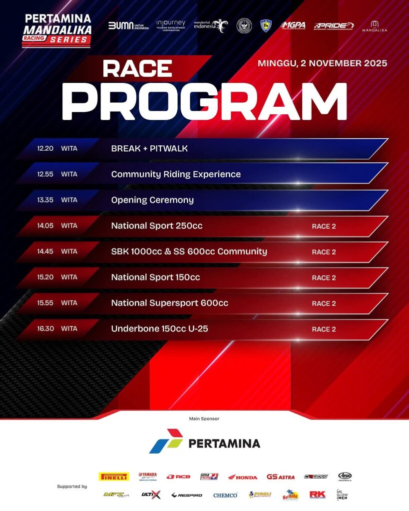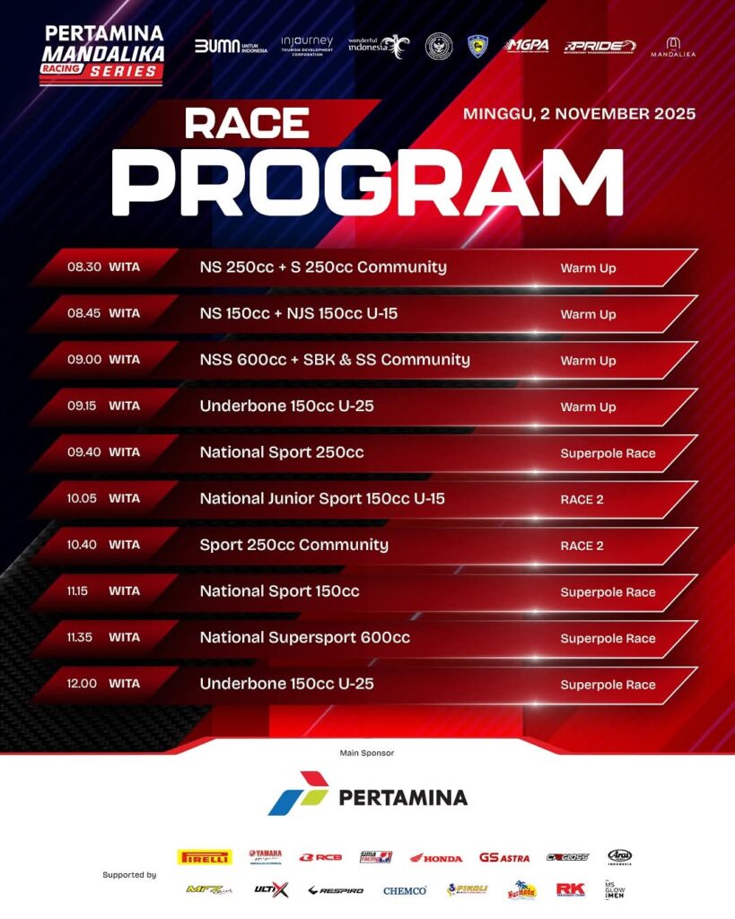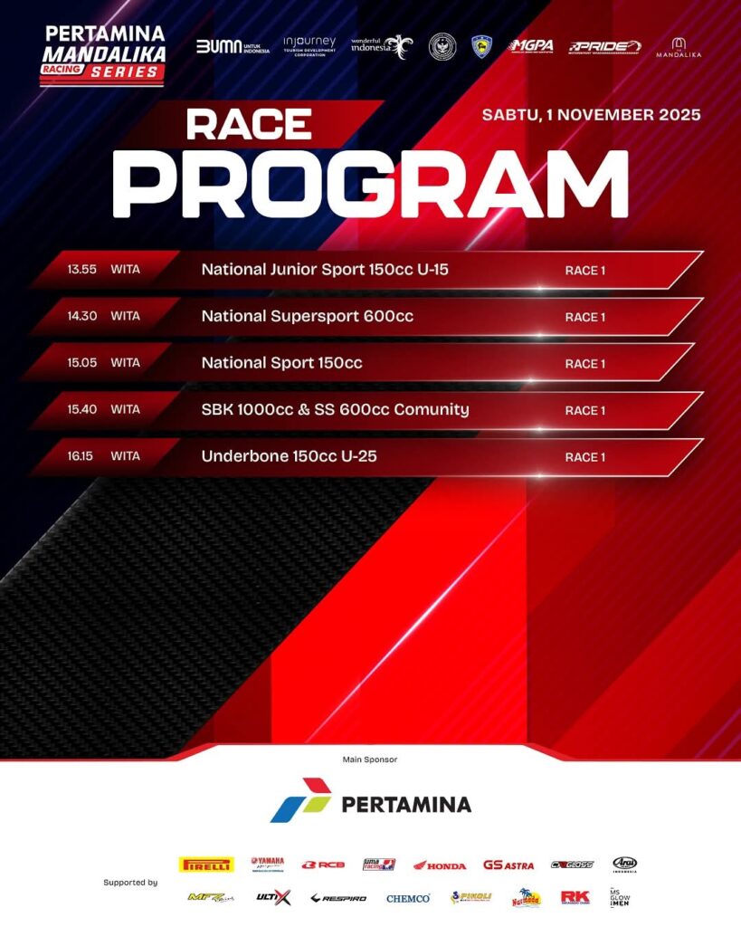 Sebagai Final Round Pertamina Mandalika Racing Series 2025 event kolaborasi antara PRIDE Motorsport, Mandalika Grand Prix Association (MGPA), Indonesia Tourism Development Corporation (ITDC), Ikatan Motor Indonesia (IMI), serta didukung penuh oleh Pertamina dan Kementerian Pariwisata RI.akan menyuguhkan balap yang menarik.