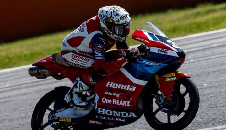 Ramadhipa melakukan tes dengan motor Moto3 yang akan dipakai untuk balap FIM Moto3 Junior World Championship.