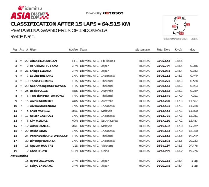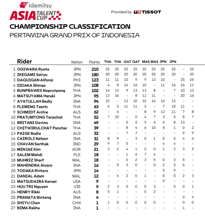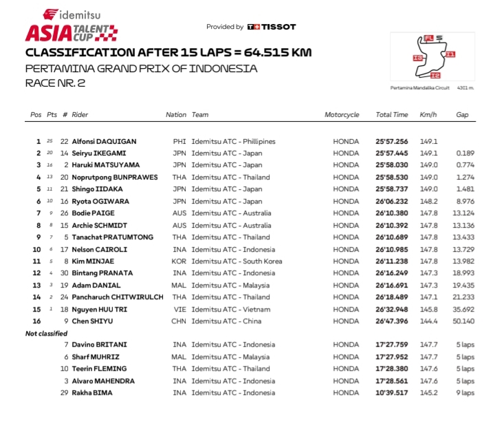 Idemitsu Asia Talent Cup (IATC) 2025 di Sirkuit Pertamina Mandalika, Lombok telah usai (4-5 Oktober 2025). Para pebalap Indonesia belum berhasil persembahkan podium pada home Race.
