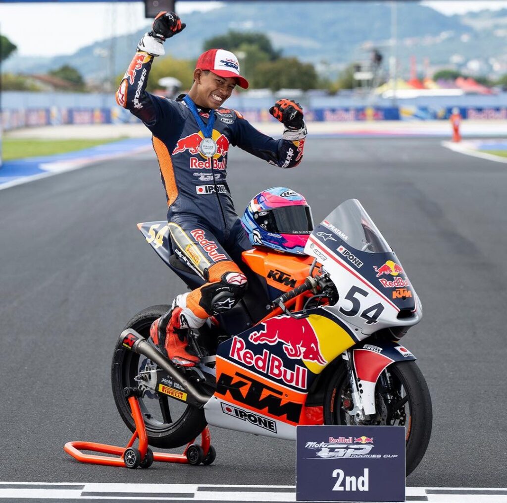 Veda Ega Pratama cetak sejarah menjadi pebalap Indonesia pertama yang mencapai dan raih Runner Up Red Bull MotoGP Rookies Cup 2025. Demikian juga dengan pebalap pendatang baru Muhammad Kiandra Ramadhipa juga mengebrak. Sebagai rookies beri perlawanan sengit dan persembahkan podium hingga berada di posisi 8 klasemen.