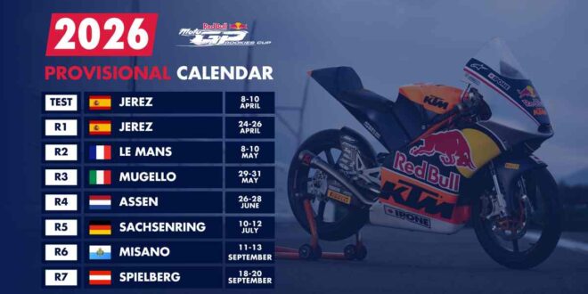 Dimana Red Bull MotoGP Rookies Cup 2026 akan berlangsung di 7 sirkuit klasik di seluruh Eropa. Musim ke-20 akan, dimulai dengan Grand Prix Spanyol di Jerez pada akhir April dan diakhiri dengan Grand Prix Austria di Spielberg pada bulan September.