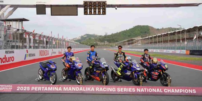 Juara Kejurnas Mandalika Racing Series 2025 menarik. Pebalap Yamaha borong juara di 5 kelas balap nasional bertempat di Sirkuit Mandalika ini