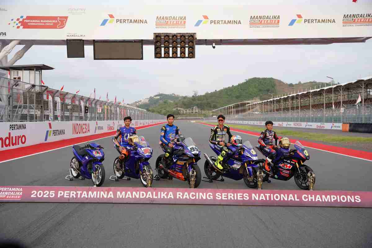 Juara Kejurnas Mandalika Racing Series 2025 menarik. Pebalap Yamaha borong juara di 5 kelas balap nasional bertempat di Sirkuit Mandalika ini