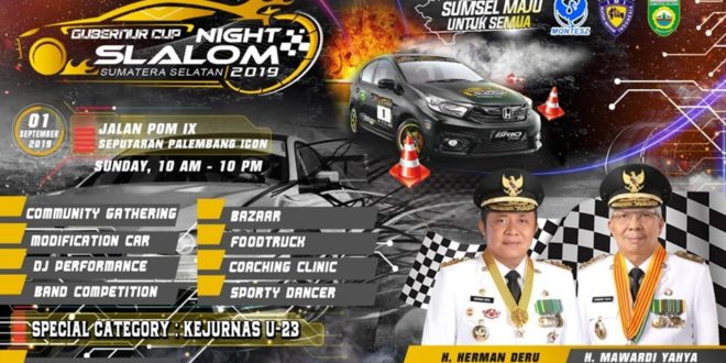Gubernur Sumatera Selatan Night Slalom dilaksanakan Sabtu dan Minggu 31 Agustus- 1 September 2019 di jalan POM IX Kampus Palembang. Penyuka slalom jangan sampai terlewat.