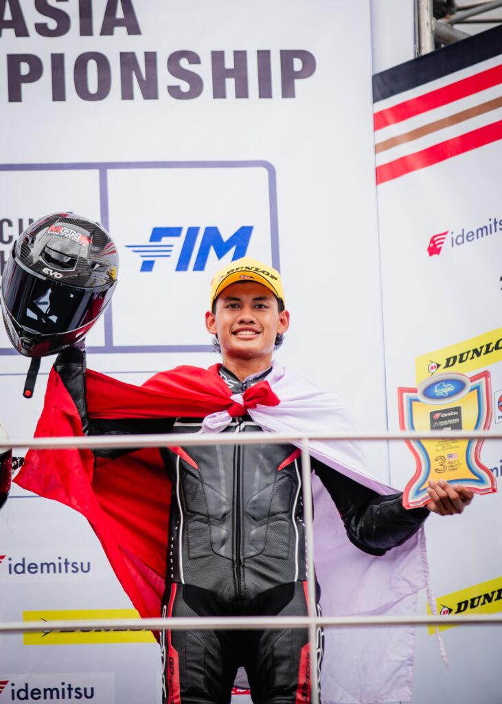 M Syirat Sauqi tampil mengejutkan di Asia Road Racing Championship (ARRC) 2025 round 5  di Sepang International Circuit di Malaysia (11-12/10).  Sebagai pebalap pengganti  John Emerson di  4S1M EVO Yamaha Racing Team kelas UB150, M Syirat Sauqi persembahkan podium ke 3 di race 2 atau balap hari Minggu.