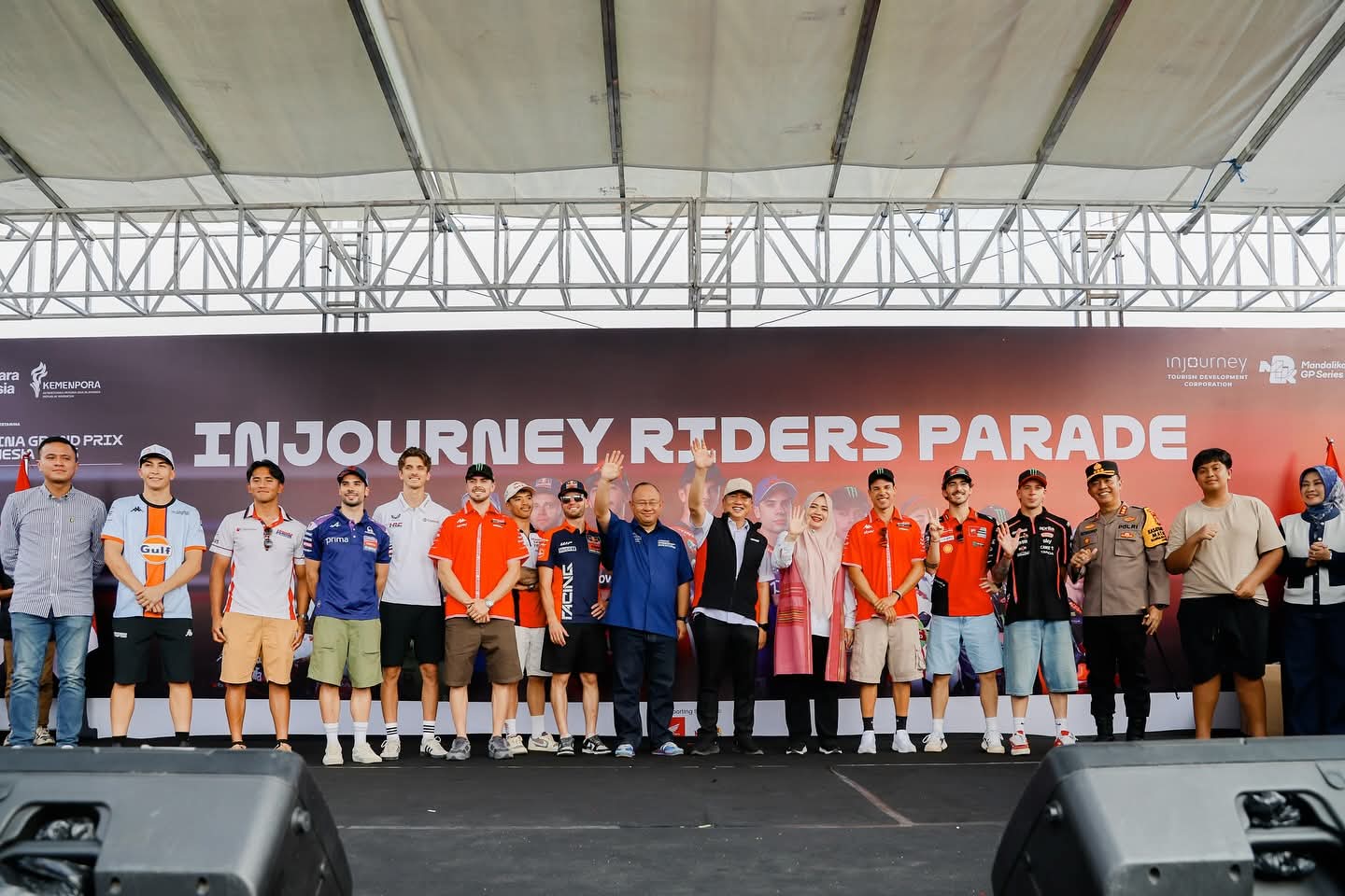 Riders Parade diikuti pebalap MotoGP Marco Bezzecchi, Francesco Bagnaia, Franco Morbidelli, Fabio Di Giannantonio, Luca Marini, Brad Binder, Miguel Oliveira, Raul Fernandez, dan Somkiat Chantra, serta Mario Aji.