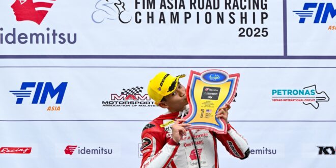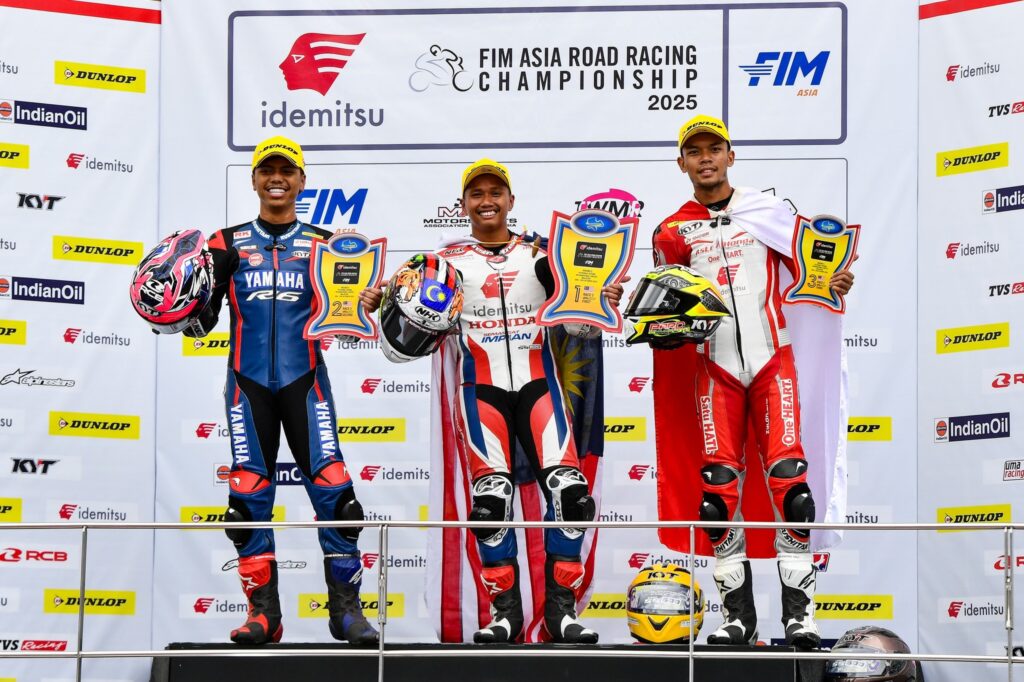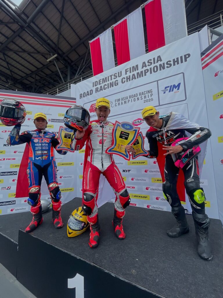 Race 2 Asia Road Racing Championship (ARRC) 2025 seri kelima yang diselenggarakan di Sepang International Circuit, Malaysia (11-12/10) pebalap Astra Honda Racing Team (AHRT) mengkilap.