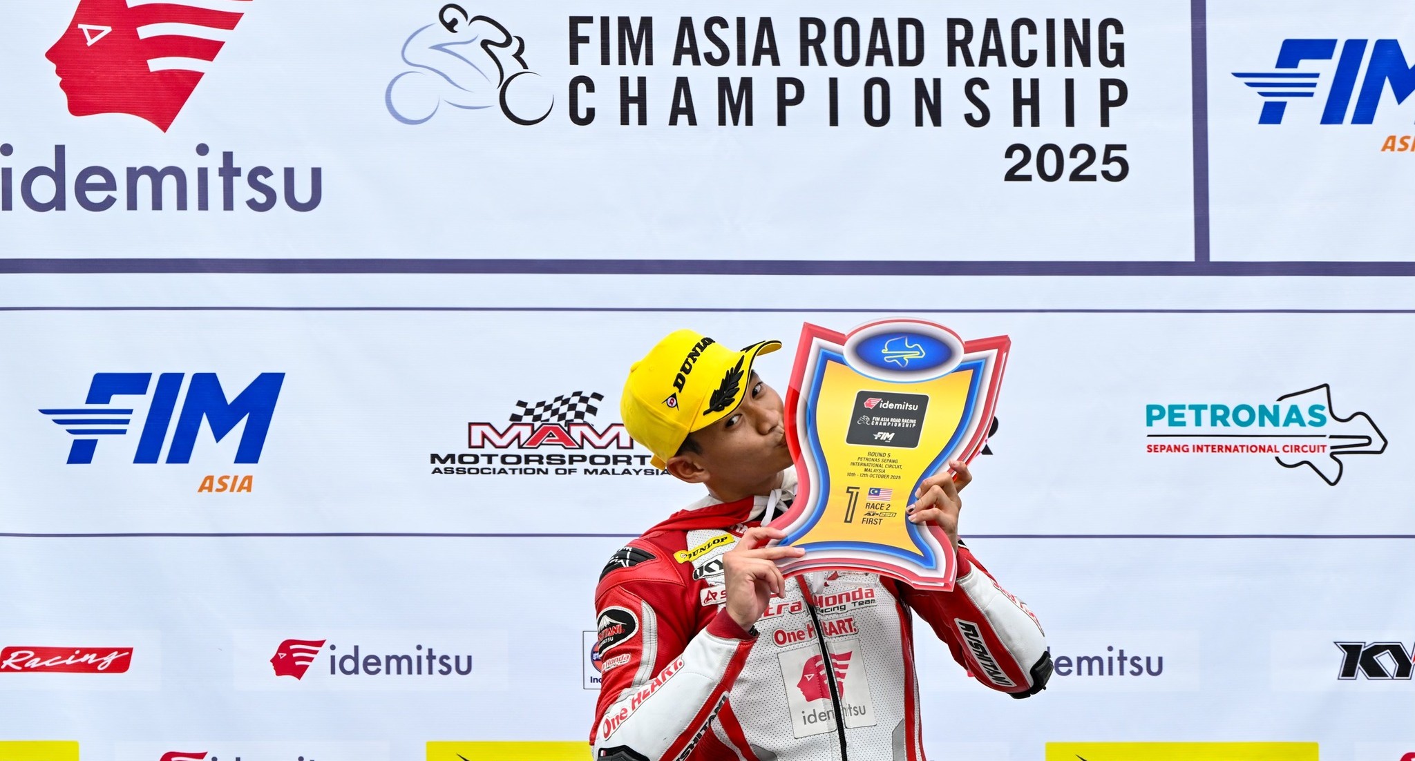Race 2 Asia Road Racing Championship (ARRC) 2025 seri kelima yang diselenggarakan di Sepang International Circuit, Malaysia (11-12/10) pebalap Astra Honda Racing Team (AHRT) mengkilap.