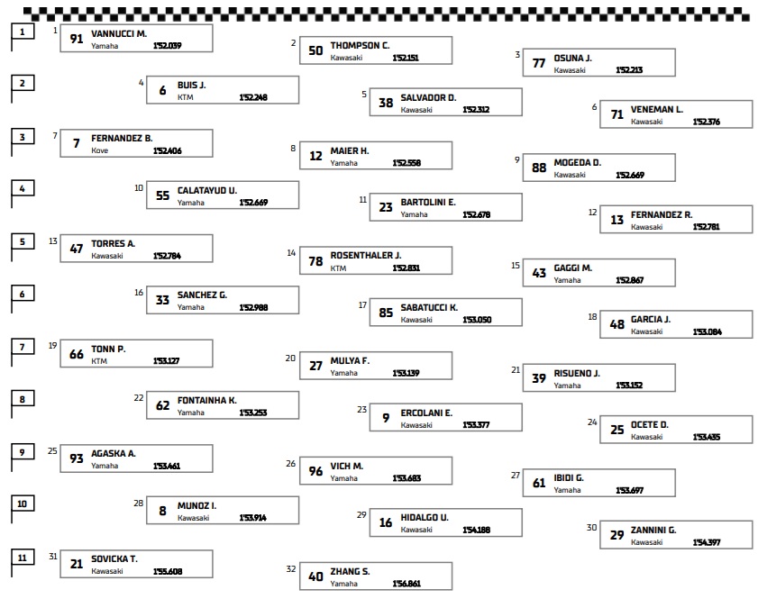 Sementara pebalap Indonesia lain yang balap WorldSSP300 yaitu Felix Putra Mulya akan start dari grid ke 20 atas waktu yang dicatatkan yaitu 1’53.139 detik di sesi Superpole.