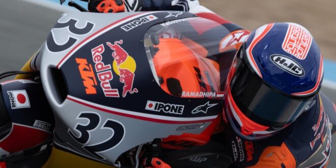 Muhammad Kiandra Ramadhipa atau biasa disapa Ramadhipa satu-satunya pebalap dari Indonesia yang jadi starter Red Bull MotoGP Rookies Cup 2026 ikut di tes ini. Dengan penuh semangat Ramadhipa ikuti tes.