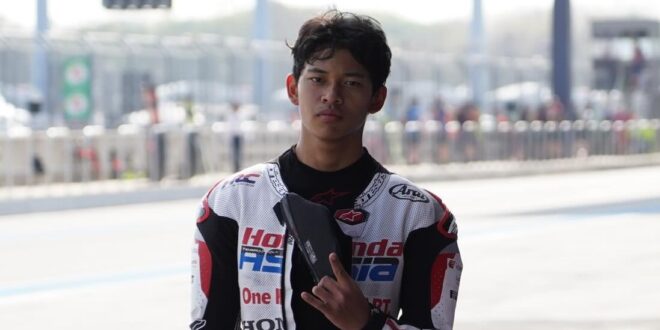 Start grid 5 Veda yang merupakan pebalap Idemitsu Honda Team Asia ini atas hasil sesi Qualifying 2 (Q2) hari Sabtu (28/2). Veda pebalap rookie di Moto3 2026 tampil mengesankan sesi Q2 yang menempati peringkat 5 dengan waktu 1’40.877 detik