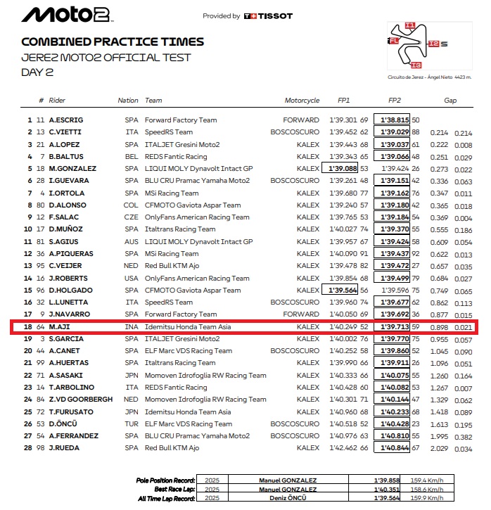 Mario Suryo Aji bersama Idemitsu Honda Team Asia menyelesaikan official tes Moto2. Pertama di Autódromo Internacional do Algarve di Portugal dan kemudian lanjut di Circuito de Jerez – Ángel Nieto di Spanyol.