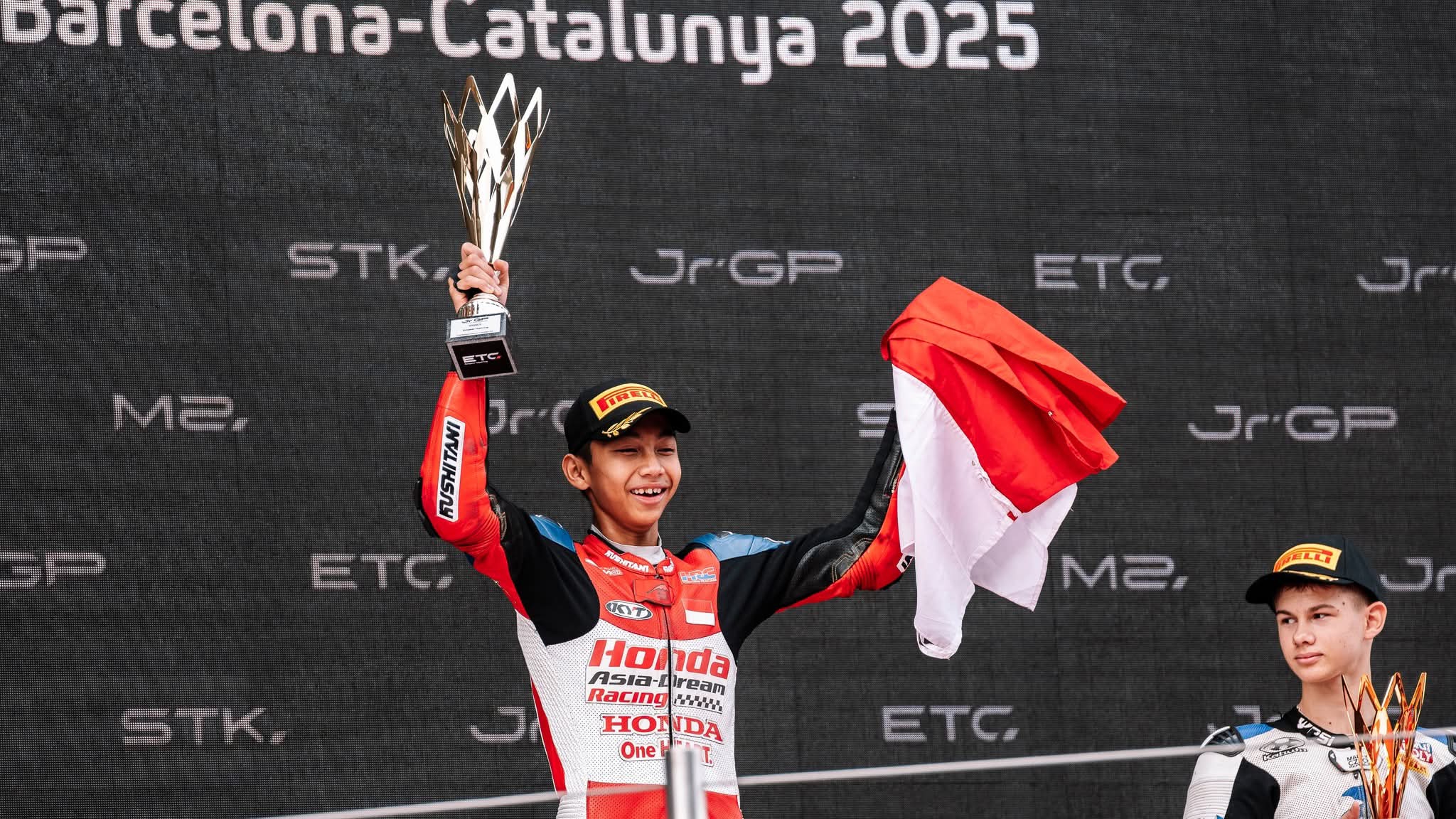 Luar biasa dan sejarah diukir Muhammad Kiandra Ramadhipa yang akrab disapa Ramadhipa pebalap Honda Asia Dream Racing Junior Team di race European Talent Cup (ETc) pada FIM JuniorGP World Championship round 6.