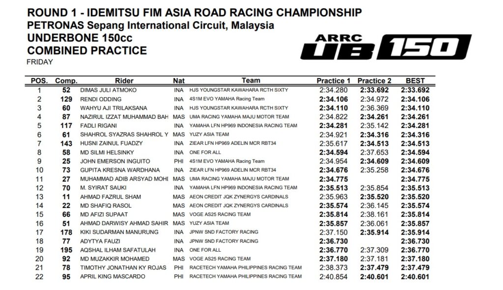 “Rendi, yang baru saja naik kelas ke kelas UB150 musim ini, langsung memberikan dampak dengan penampilan yang mengesankan di sesi pembuka,” tulis ARRC.