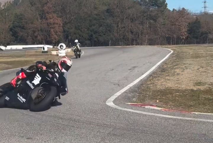 Demikian juga dengan Mario Suryo Aji, dari video yang diunggah di sosmednya juga ikuti latihan. Mario melibas tikungan dengan membawa motornya sliding.