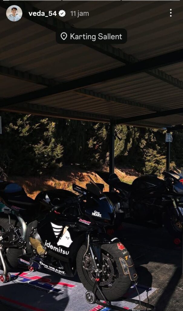 Dari unggahan story sosmed Veda Ega Pratama yang ikut menyertakan lokasinya, latihan dilakukan di Karting Sallent. Veda Ega Pratama terlihat tengah melibas tikungan dengan menunggang motor warna hitam dan memakai wearpack hitam.
