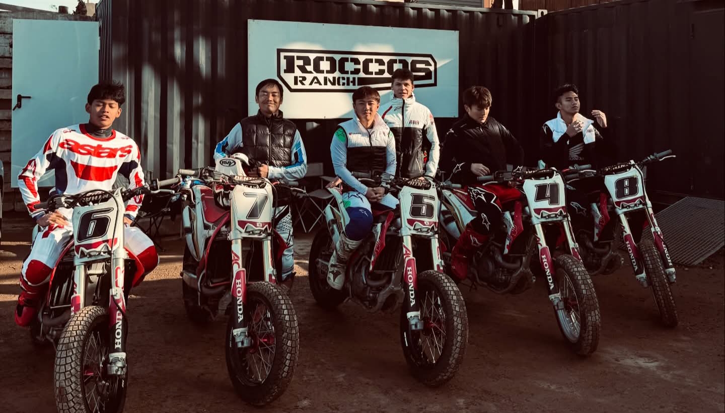 Honda Team Asia kembali mengunggah video pebalapnya ketika latihan flat track di Rocco’s Ranch. Dituliskan dalam unggahan ini,”Speed Test. Can you recognise the order of the riders?
