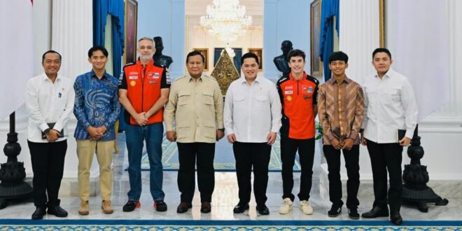 Jelang MotoGP Indonesia akan berlangsung Jumat-Minggu 3-5 Oktober 2025 di sirkuit Mandalika Lombok, juara dnia MotoGP 2025 Marc Marquez bertemu Presiden Prabowo di Istana Merdeka Jakarta pada Selasa (30/9). Dalam pertemuan ini Marc Marquez bersama dua pebalap Indonesia yaitu Veda Ega Pratama runner up Red Bull MotoGP Rookies Cup 2025 dan Mario Suryo Aji pebalap Moto2.