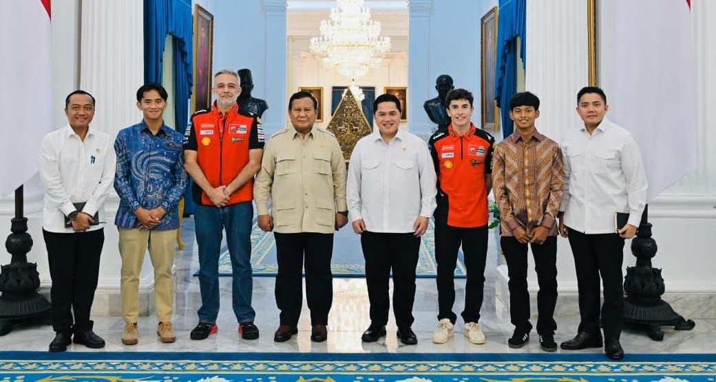 Jelang MotoGP Indonesia akan berlangsung Jumat-Minggu 3-5 Oktober 2025 di sirkuit Mandalika Lombok, juara dnia MotoGP 2025 Marc Marquez bertemu Presiden Prabowo di Istana Merdeka Jakarta  pada Selasa (30/9). Dalam pertemuan ini Marc Marquez bersama dua pebalap Indonesia yaitu Veda Ega Pratama runner up Red Bull MotoGP Rookies Cup 2025 dan Mario Suryo Aji pebalap Moto2.