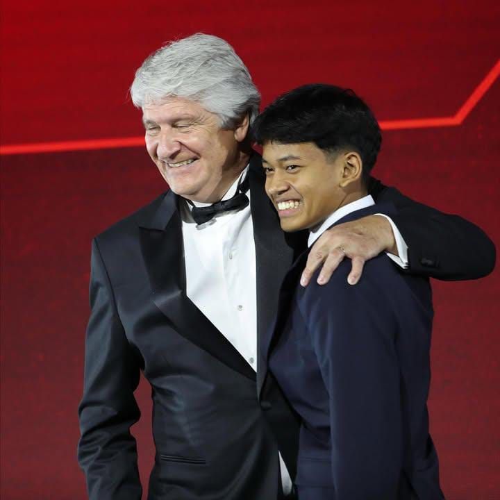 Veda Ega Pratama sebagai Runner-up Red Bull MotoGP Rookies Cup 2025 di MotoGP Awards 2025 juga naik ke panggung dan menjawab beberapa pertanyaan dari pembawa acara