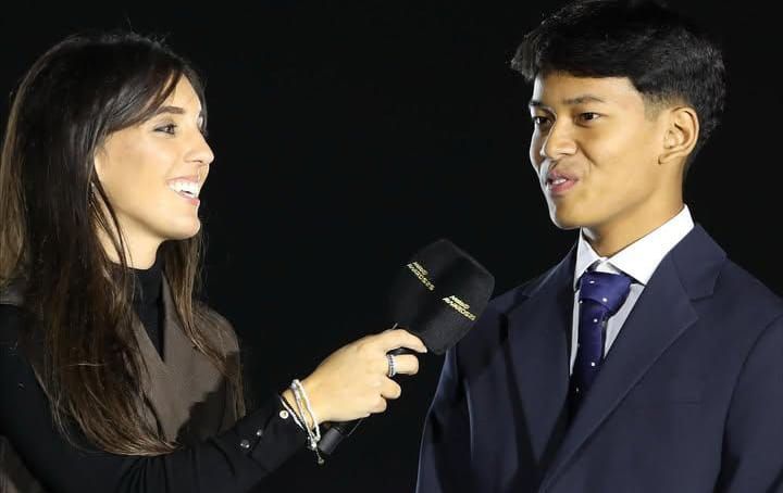 Veda Ega Pratama sebagai Runner-up Red Bull MotoGP Rookies Cup 2025 di MotoGP Awards 2025 juga naik ke panggung dan menjawab beberapa pertanyaan dari pembawa acara